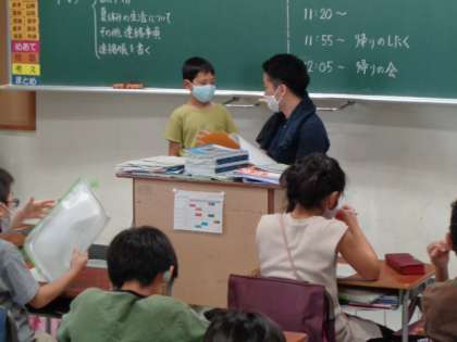 臨時休業があった関係で、今日は1学期の所見のみの通知表を渡しました。それぞれの学級で一人一人に担任から手渡されました。