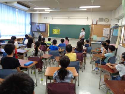短かった夏休みが終わり、今日から2学期です。TV放送での始業式では、校長先生から耳+目、心で「聴く」をめあてに頑張って欲しいというお話がありました。また、3人の代表児童は1学期に頑張ったことや2学期の目標について等、とても落ち着いて発表できました。