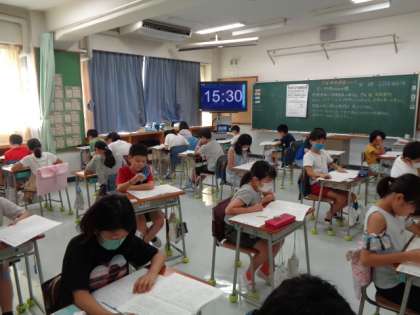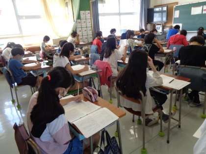 1校時から4校時まで、4年生から6年生まで世田谷区の学習状況を確認する仕組みとして取り組んでいる「学習習得確認調査」を実施しました。どの子も真剣に問題に取り組んでいます。