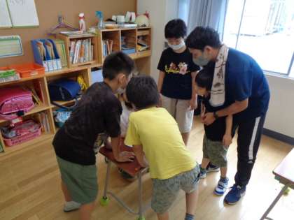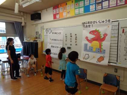 子どもたちが中心になってゲームをして楽しみました。縦わりグループでの活動も盛り上がりました。