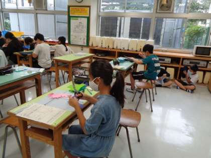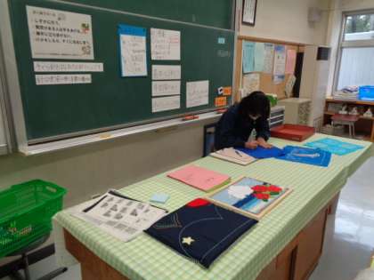 作品作りが進んできました。刺しゅうをしたり、ポケットを付けたり思い思いに工夫を凝らしています。