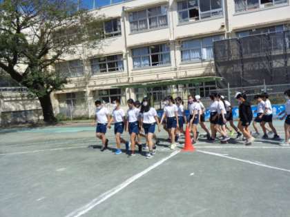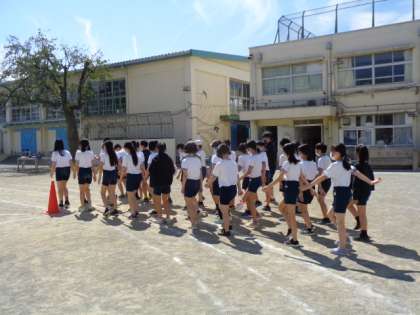 行進を揃える練習です。少しずつ気持ちが揃い、リズムや歩幅も揃ってきました。