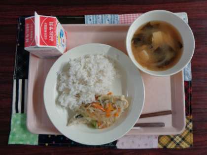 ごはん 魚の唐揚げ野菜あんかけ みそ汁 牛乳