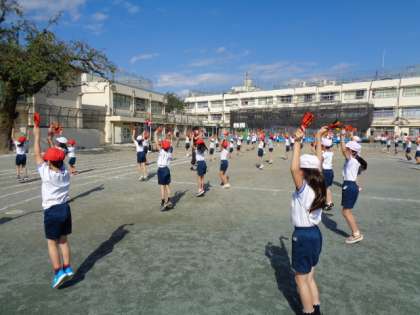 秋晴れの下、思いっきり体を動かして難しい振付にチャレンジ中です。