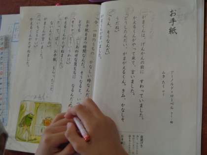 「お手紙」の物語の文章から主語と述語を探す学習をしました。ヒントは「が」「は」