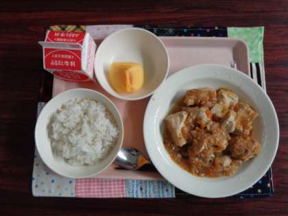 ごはん 生揚げのそぼろあんかけ 柿 牛乳