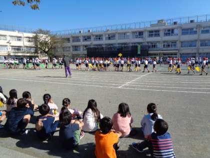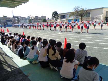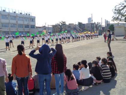 本番前に、3年生が見学しました。本番のような緊張感で演技しました。演技が終わると自然と拍手がおくられました。
