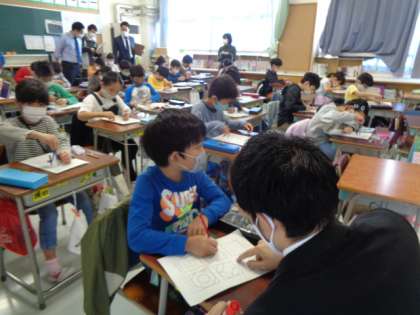 コンパスを使って模様をかきました。円の中心をどこに置くか考えてきれいな模様を考えました。
