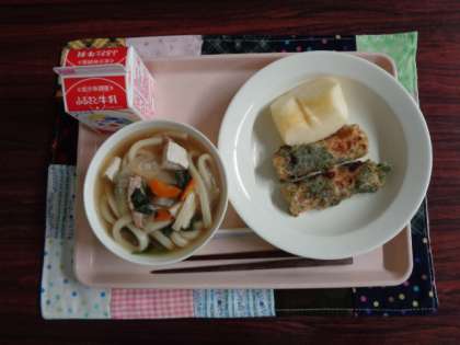 けんちんうどん ちくわの磯辺揚げ りんご 牛乳