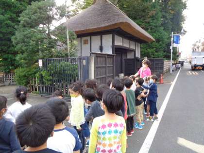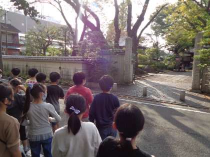 第1回目の町たんけんは学校から代官屋敷訪問に歩きました。弦巻小学校の近くにはどんなものがあるか発見できたかな。