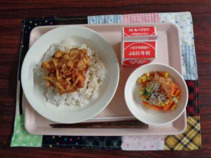 かき揚げ丼 きゃべつのおかか味 牛乳