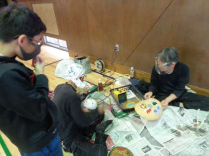 6年生は「日光林間学園」が中止になってしまったので、その時に体験を予定していた「ふくべ細工」作りを体育館で体験しました。思い思いの作品を作り持って帰りました。