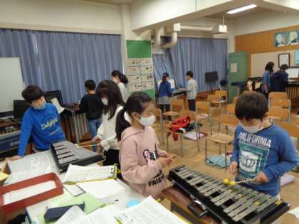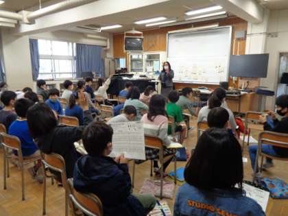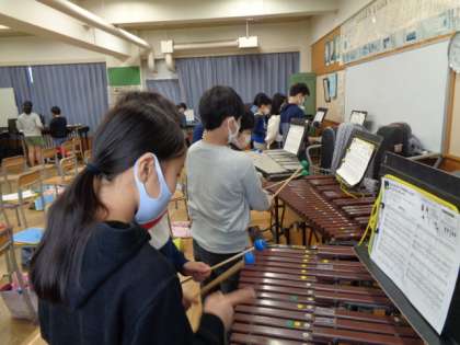 ペア学習で教え合って学習しました。初めの休符のタイミングが難しかったようです。
