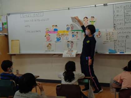 各クラスで道徳の授業をしました。2年生のグループでは「友達となかよく遊ぶには、どうしたらよいのだろう」をテーマにブランコを独占している友達にどんな風に声をかけたらいいか考えました。