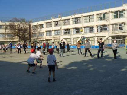 学校公開期間を利用して、2年生は親子でドッジボールをしました。たくさんの保護者の方に参加いただき、歓声が上がるほど盛り上がりました。