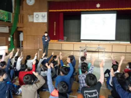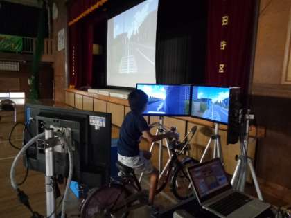 ゲストティーチャーを招いて自転車シュミレーターをつかった、自転車安全教室を行いました。実際の道路で起こりうる交通事故を想定して場面ごとに、みんなで自転車の安全な乗り方について考えました。