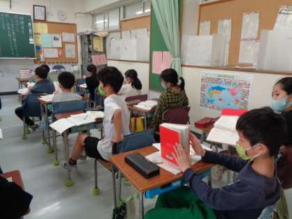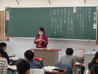 国語辞典を使って「慣用句」の学習をしました。「猫の額」など動物を使った慣用句を調べました。