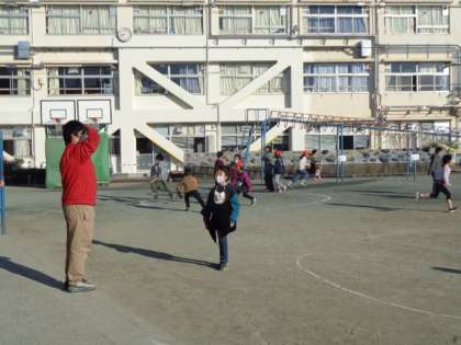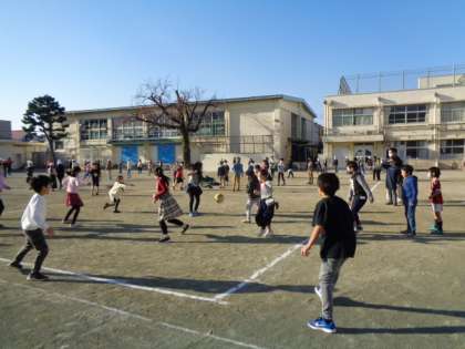朝から穏やかによく晴れています。広くなった校庭でドッジボールやどろけいで楽しく遊びました。