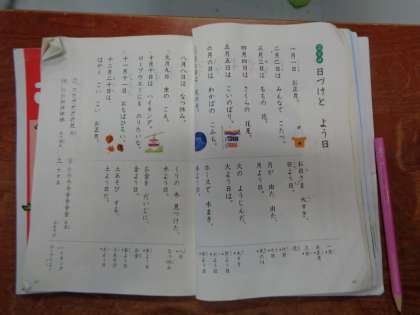 1年生もずいぶんたくさんの漢字を学習しました。今までに習った漢字を使って「日づけとよう日」を表します。「ついたち、ふつか、みっか、・・・」日本語は難しいですね。