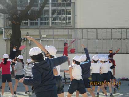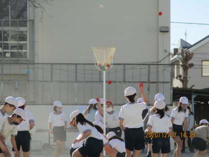 学年で企画運営した「ミニ運動会」をやりました。クラス対抗で勝利をめざし団結を深める学年行事となりました。