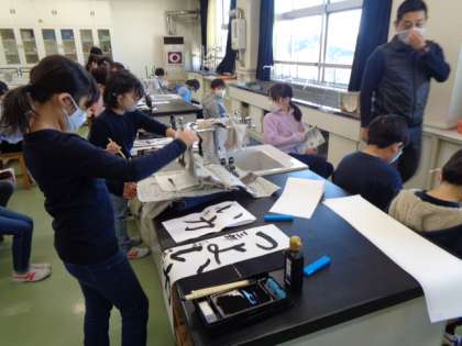 感染症対策の為、ランチルーム、理科室をつかって集中して書きました。
