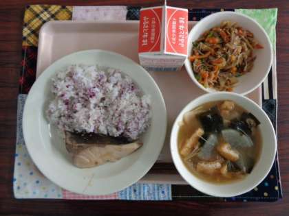 ゆかりごはん ぶりの照り焼き きんぴら みそ汁 牛乳