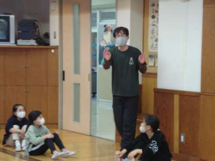 ランチルームで、とても楽しそうな声が聞こえてきました。感染対策をしながらの表現活動は、見ていても、参加しても楽しいものでした。