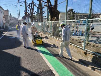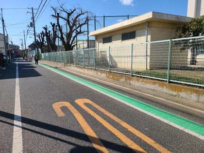 南門の校舎側の路側帯がグリーンベルトになりました。