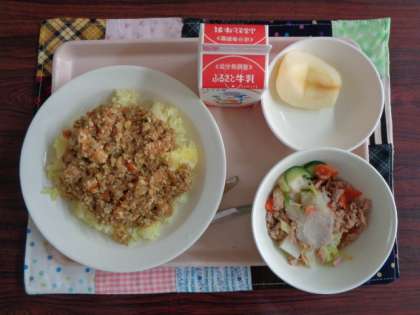 ドライカレー カラフルサラダ りんご 牛乳