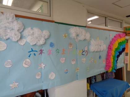 今年度の6年生を送る会はTV放送で行いました。6年生も映像を教室で視聴しました。各学年からの出し物や廊下掲示で感謝の気持ちを伝えることができました。