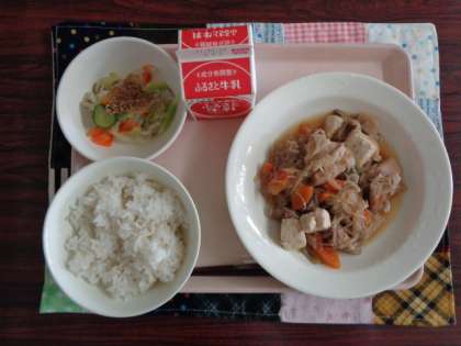 ごはん 豚肉のすき焼き煮 きゃべつともやしのごまだれ 牛乳