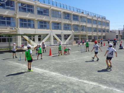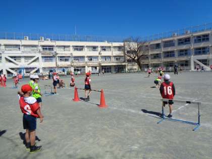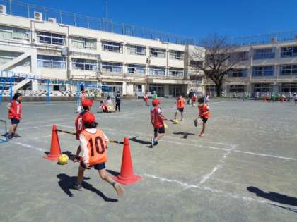うまくけってゴールへたくさん入れられるように頑張りました。周りの友達の声援が微笑ましかったです。