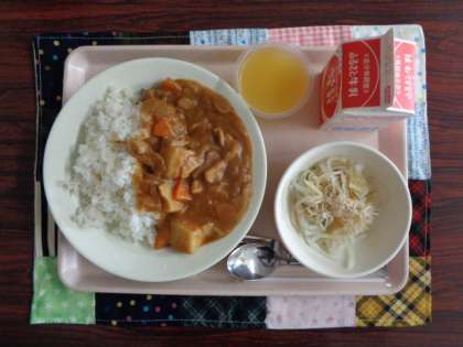 カレーライス だいこんじゃこサラダ オレンジゼリー 牛乳