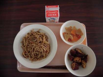 ソース焼きそば 野菜の中華味 大学芋 牛乳