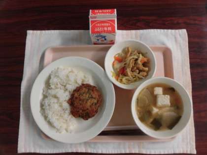 ごはん 手作りさつま揚げ みそ汁 煮びたし 牛乳