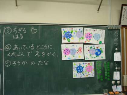教室に、色とりどりのアジサイが咲いたようです!