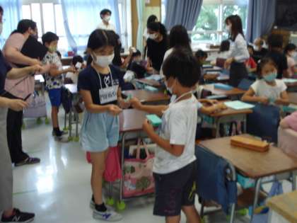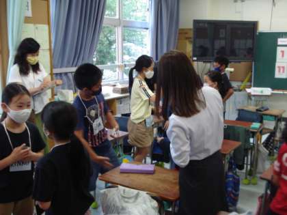 おはじきや、図形、カードなどを使い、様々な場面で数えたり数をたずねる学習でした。子供たちは、意欲的に学習に取り組んでいました。