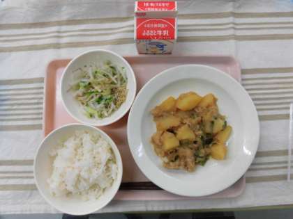 麦ごはん ピリ辛肉じゃが 大根じゃこサラダ 牛乳