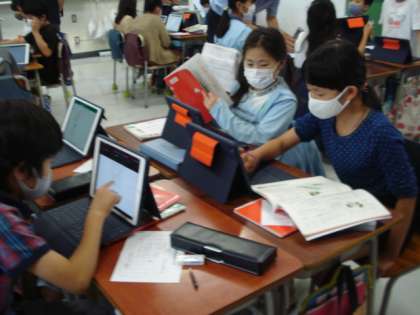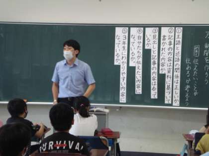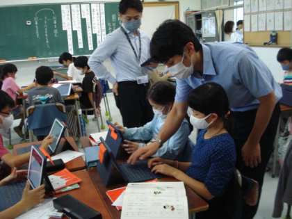 国語の「事実をわかりやすくほうこくしよう」という単元で研究授業が行われました。Teamsを使った新聞作りに取り組んでいました。3年生に伝えるための新聞をグループで手直ししてより良いものにしていました。