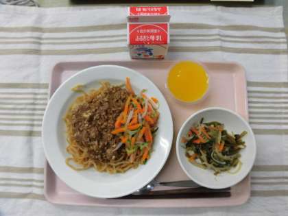 ジャージャー麺 茎わかめの中華炒め みかんゼリー