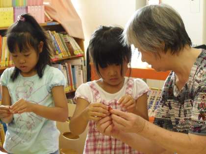 “おりがみ”は今日から続けて3回あります。教えていただきながら、むずかしい折り方に挑戦していました。