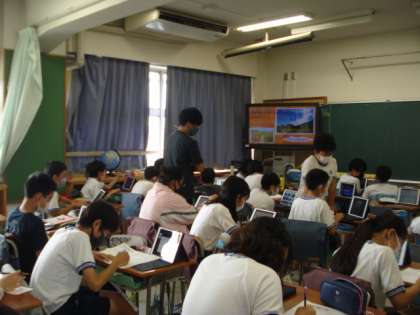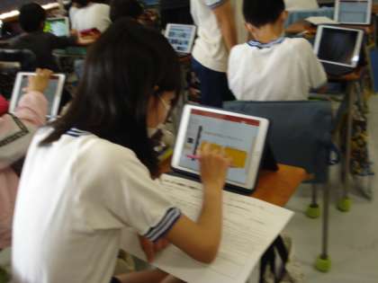 6年生は、パワーポイントを使って日光や興味のあることについてのプレゼンテーションを作成していました。基本を教えるだけで、子どもたちは様々な機能をすぐに使えるようになり、感心します。