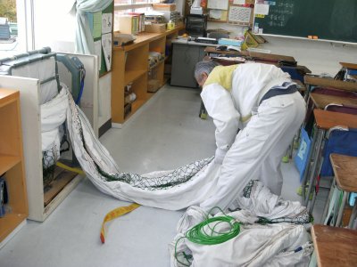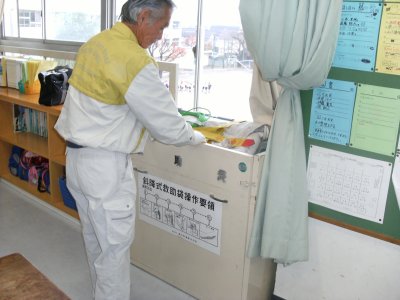 体育館も耐震工事がされました。子どもの避難に使われる用具も