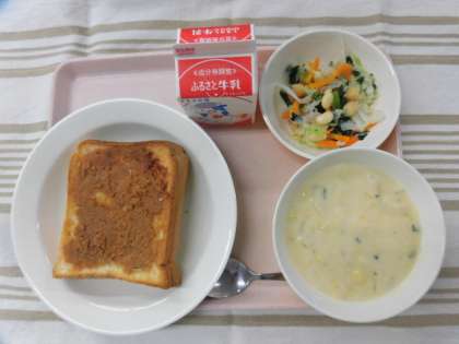 きなこトースト コーンポタージュ ビーンズサラダ