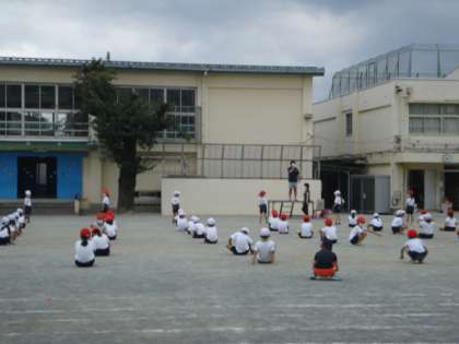 天気がよくて、校庭が使える日は限られているので、先生も子どもも真剣です。