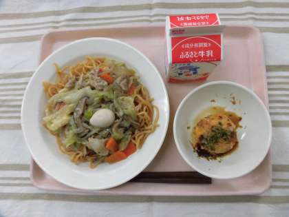 あんかけ焼きそば ポテトたこ揚げ 牛乳