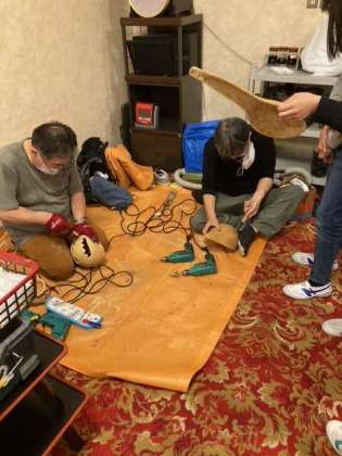 ?栃木県の伝統工芸、ふくべ細工の職人さんに宿に来ていただき、ふくべ細工を体験させていただきました。
