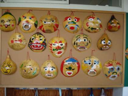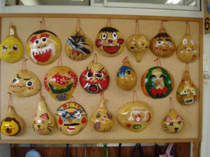 日光で作ったふくべ細工が届きました。表面にニスが塗られた作品は、一つ一つ個性があり、見ていて飽きません。