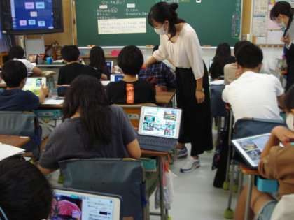 ロイロノートを使って、資料をじっくり見たり、友達のカードから学んだりする学習でした。どの子も、ロイロノートを使いこなしていました。身近な食材についても関心が高まる授業でした。