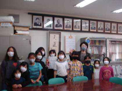女子のサッカーチームが世田谷区の大会で3位になったので校長室で表彰しました。